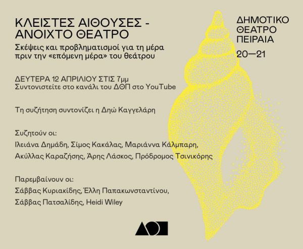 Την Δευτέρα 12 Απριλίου στις 7 το απόγευμα, θα έχουμε την ευκαιρία να παρακολουθήσουμε ζωντανά στο κανάλι του Δημοτικού Θεάτρου Πειραιά στο youtube.