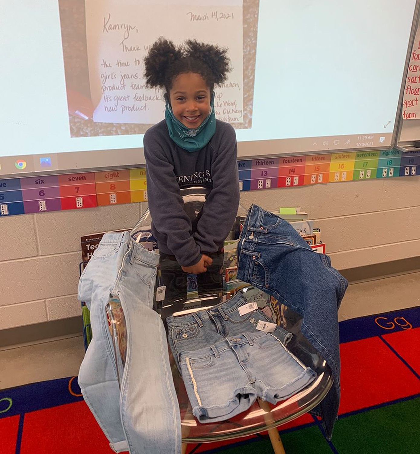 «Σε ευχαριστούμε πολύ που βρήκες τον χρόνο να μας γράψεις για τις τσέπες στα τζιν των κοριτσιών», αναφέρει το χειρόγραφο σημείωμα που έστειλε στην Kamryn εκπρόσωπος της εταιρίας, ενώ μετέφερε το ευχαριστώ της ομάδας παραγωγής παιδικών ρούχων για την βοήθεια της 7χρονης στην ανάπτυξη του νέου προϊόντος.