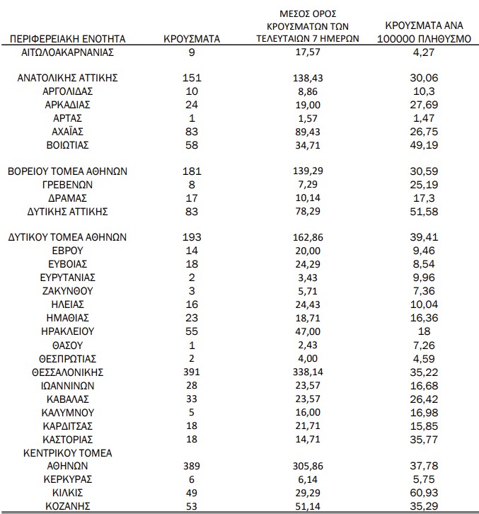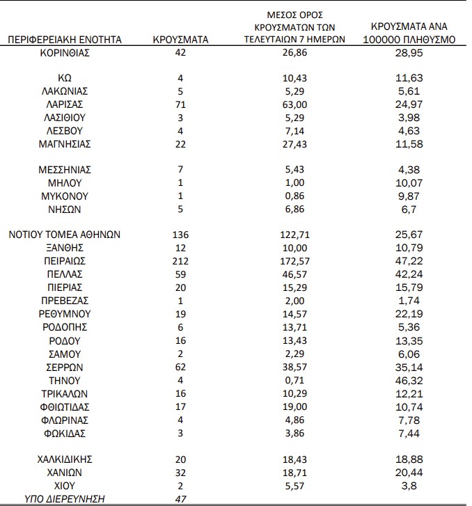 Την ίδια στιγμή η Αχαΐα δίνει 83 νέες επιβεβαιωμένες μολύνσεις, ενώ η Λάρισα 71.