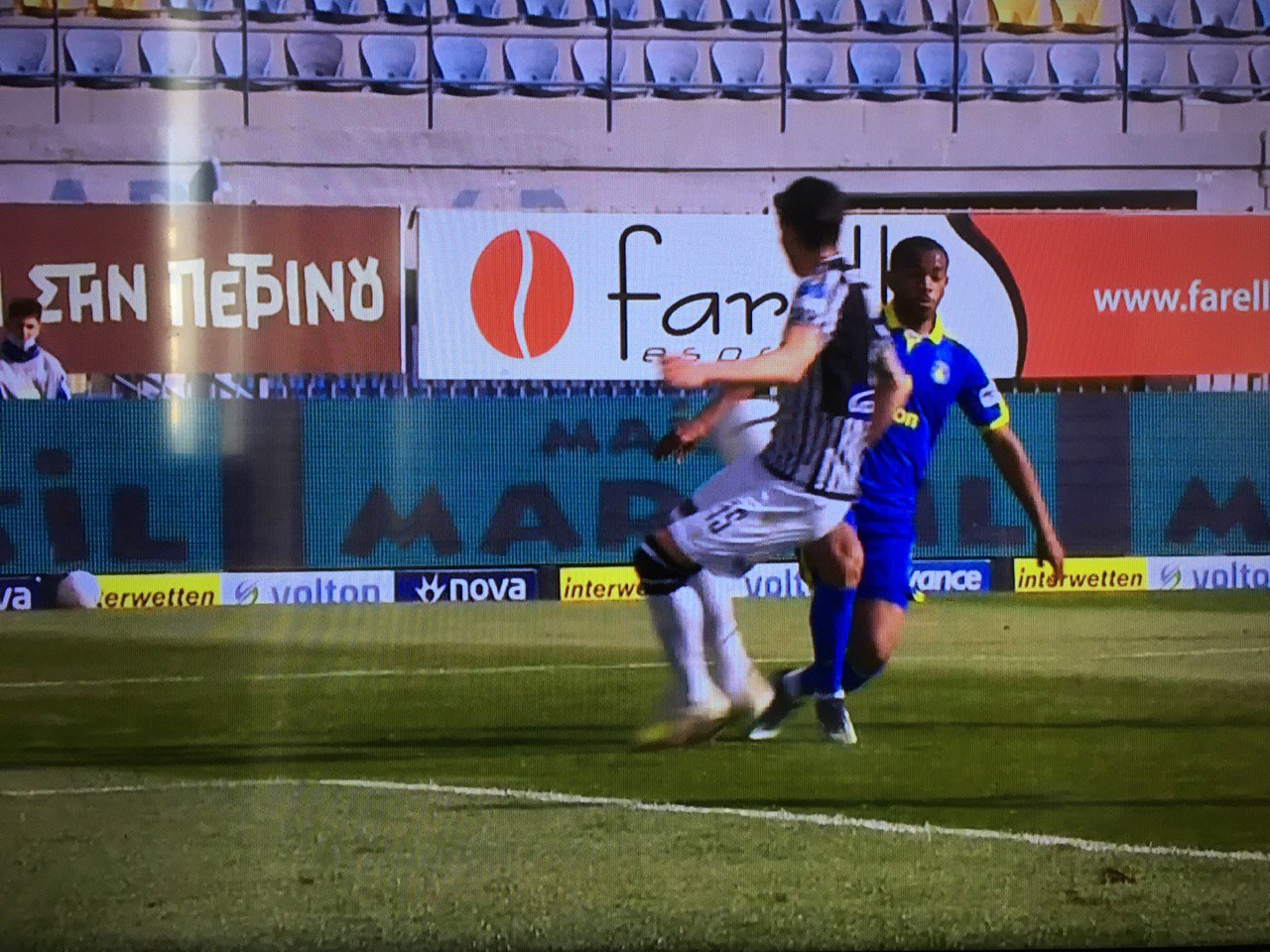 Συγκεκριμένα ο Τιλίκα μπήκε μέσα στην περιοχή από τα δεξιά, θέλησε να βγάλει τη σέντρα, με την μπάλα να χτυπά εμφανώς στο χέρι του Κρέσπο. Ο Καραντώνης έδωσε συνέχεια στο παιχνίδι, ενώ ούτε από το VAR του υπέδειξαν να πάει να τσεκάρει τη φάση.