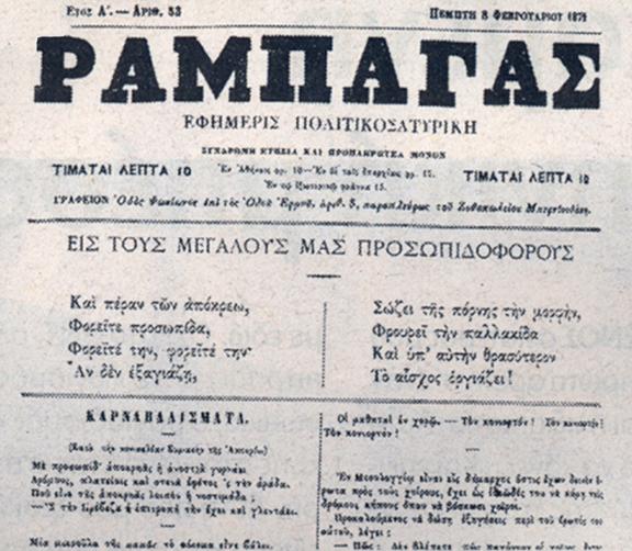 Τον Ιανουάριο του 1880 ο Γαβριηλίδης αποχώρησε από το «Ραμπαγά» και προέβη στην έκδοση της πολιτικοσατιρικής εφημερίδας «Μη Χάνεσαι».