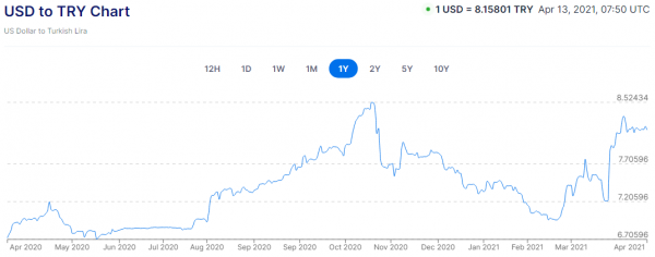 Όπως δείχνουν τα στοιχεία της Chainalysis, μιας αμερικανικής ερευνητικής εταιρείας, το δίμηνο Φεβρουαρίου-Μαρτίου η αξία των συναλλαγών που αφορούσαν το Bitcoin πλησίασε τα 25 δισ. δολάρια, έναντι λιγότερων του ενός δισ. την ίδια περίοδο του 2020. Μάλιστα, παρατηρήθηκε «έκρηξη» αμέσως μετά την ανακοίνωση της αποπομπής από τον Ερντογάν του διοικητή της κεντρικής τράπεζας, Νατσί Αγμπάλ.