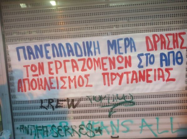 Σύμφωνα με τις πληροφορίες της ιστοσελίδας thestival.gr, στην είσοδο του κτιρίου της διοίκησης έχουν τοποθετηθεί πανό με συνθήματα. «Όχι στον νόμο Κεραμέως – Χρυσοχοΐδη» και «Έξω από τα ΜΑΤ από τις σχολές» αναφέρουν μεταξύ άλλων.