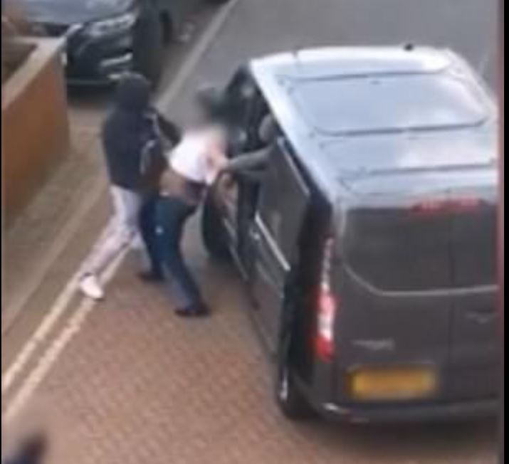 Kαρέ – καρέ τη στιγμή που απαγωγείς επιτίθενται σε άνδρα, τον σέρνουν στο πίσω μέρος ενός γκρίζου βαν και εξαφανίζονται, φέρνει στο φως η βρετανική Daily Mail».