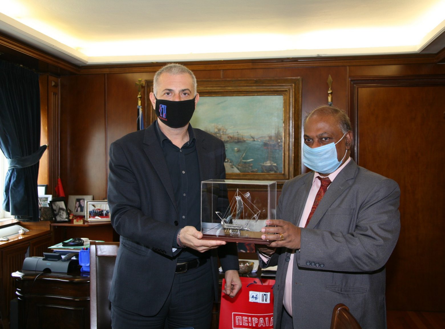 Από την πλευρά του Δήμου Πειραιά παρευρέθηκε επίσης η Αντιδήμαρχος Επικοινωνίας – Προβολής, Μέσων Ενημέρωσης και Αξιοποίησης Ευρωπαϊκών και Εθνικών Πόρων κα Ανδριάνα Ζαρακέλη. Οι συναντήσεις πραγματοποιήθηκαν σύμφωνα με τα μέτρα για την προστασία από την πανδημία του covid-19 και στο τέλος τους αντηλλάγησαν αναμνηστικά δώρα.