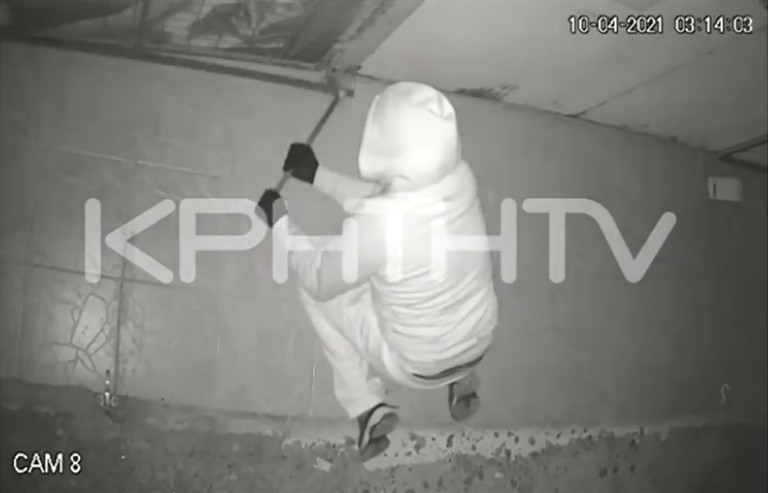 Οι δύο δράστες, αφού προσπαθούσαν για αρκετή ώρα με λοστούς, όπως φαίνεται στο βίντεο που εξασφάλισε το ΚΡΗΤΗ TV, κατάφεραν να σπάσουν τα κιγκλιδώματα, να σύρουν το προστατευτικό και στη συνέχεια γκρεμίσουν κυριολεκτικά τα πάντα.