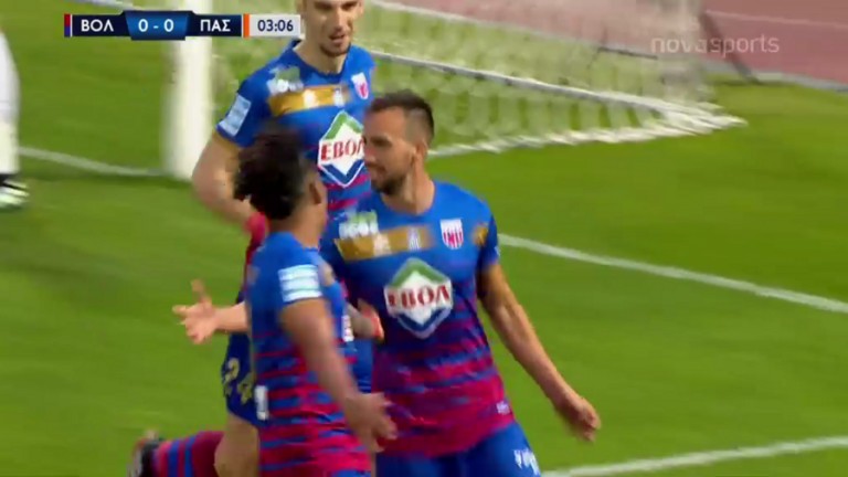 Από εκτέλεση κόρνερ ο Σάντσες πήρε την κεφαλιά και έκανε το 1-0 για τον Βόλο κόντρα στον ΠΑΣ Γιάννινα, μόλις στο 4΄.