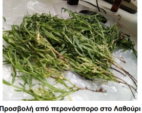 Προσβολές από περονόσπορο διαπιστώθηκε σε καλλιέργειες με Λαθούρι σε περιοχές των νομών Λάρισας , Μαγνησίας και Φθιώτιδας. Οι καιρικές συνθήκες των τελευταίων ημερών είναι ευνοϊκές για τη ανάπτυξη του μύκητα και την μετάδοση του. Η ασθένεια ευνοείται από ομιχλώδη, υγρό και ψυχρό καιρό.