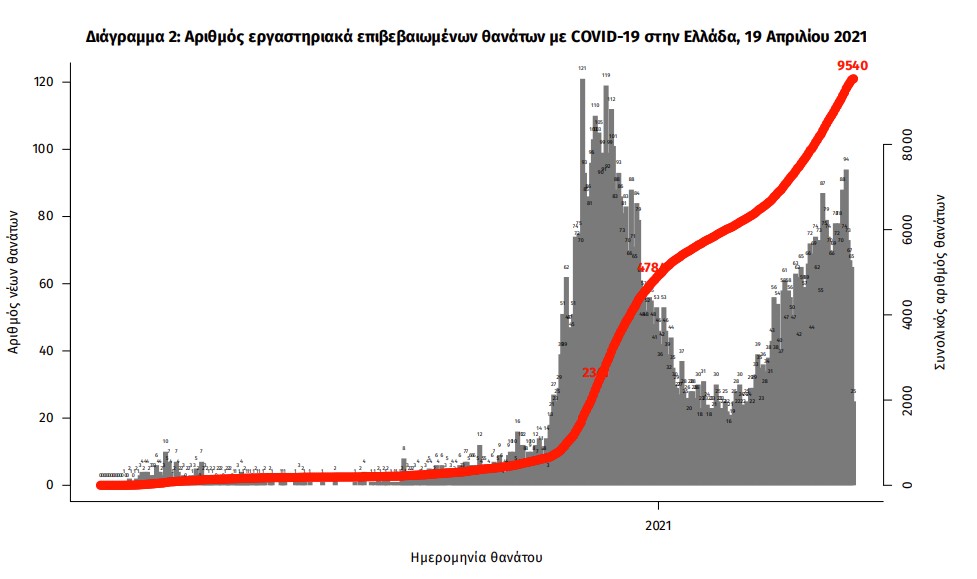 Οι νέοι θάνατοι ασθενών με COVID-19 είναι 78, ενώ από την έναρξη της επιδημίας έχουν καταγραφεί συνολικά 9.540 θάνατοι. Το 95.5% είχε