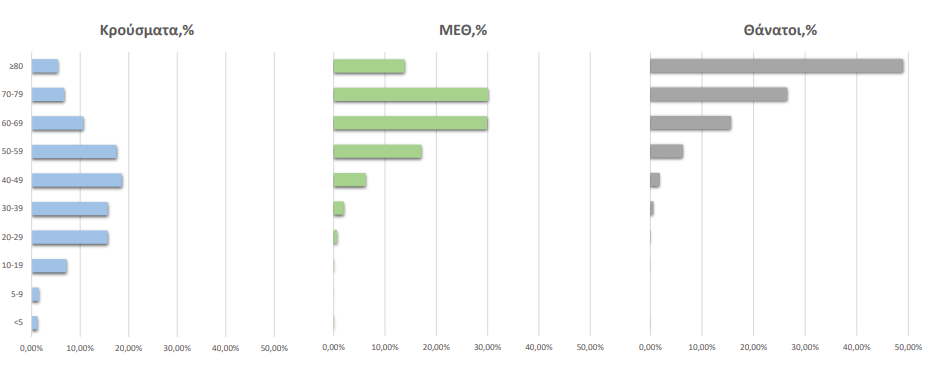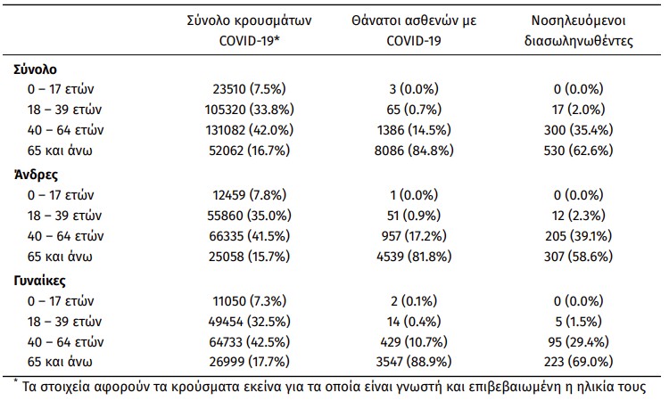 Η διάμεση ηλικία των κρουσμάτων είναι 44 έτη (εύρος 0.2 έως 106 έτη), ενώ η διάμεση ηλικία των θανόντων είναι 79 έτη (εύρος 0.2 έως 106 έτη).