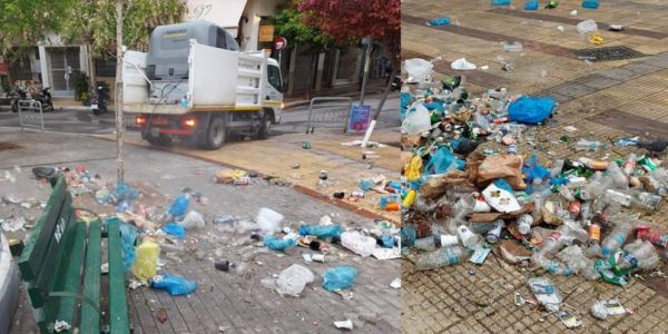 Αυτό είναι ένα μικρό φωτογραφικό δείγμα από τα άψυχα και βιολογικά απόβλητα στα νυχτερινά ξεφαντώματα στις πλατείες των Αθηνών και των όμορων δήμων. Στα video που μεταδόθηκαν στα τηλεοπτικά δίκτυα οι σωροί αυτών των αποβλήτων από τα κορωνο-πάρτι σχηματίζουν πραγματικούς λόφους.