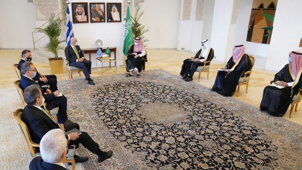 Νωρίτερα, ο υπουργός Εξωτερικών Νίκος Δένδιας συναντήθηκε σε εγκάρδιο κλίμα με τον Σαουδάραβα υπουργό Επικρατείας Αντέλ αλ Τζουμπέιρ.