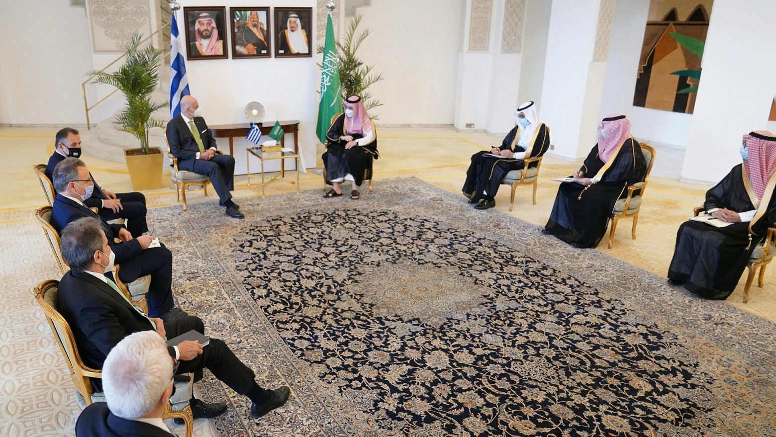 Με τη συνάντηση με τον υπουργό Εξωτερικών της Σαουδικής Αραβίας, πρίγκιπα Φάισαλ μπιν Φαρχάν, οι υπουργοί Νίκος Δένδιας και Νίκος Παναγιωτόπουλος ολοκλήρωσαν την κοινή τους επίσκεψη στο Ριάντ