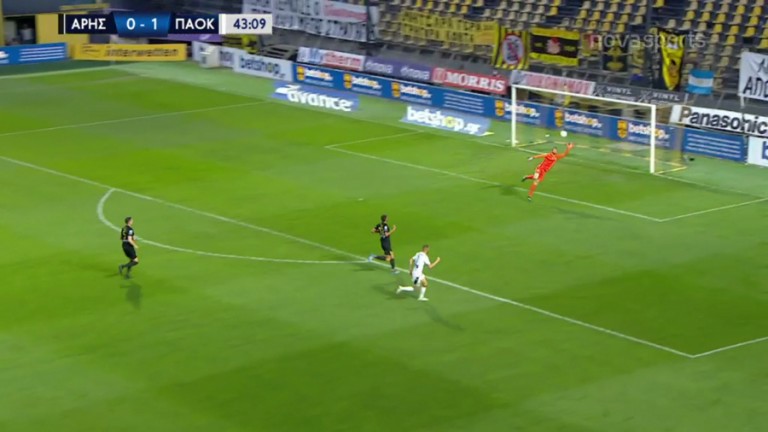 Λίγο πριν τελειώσει το ημίχρονο ο ΠΑΟΚ έφτασε μια ανάσα από το 2-0 στο ντέρμπι με τον Άρη.