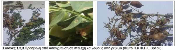 Οι καιρικές συνθήκες των τελευταίων ημερών με τις βροχοπτώσεις και τις θερμοκρασίες που επικράτησαν ευνόησαν την έναρξη της Ασκοχύτωσης σε πρώιμες καλλιέργειες με ρεβίθια (ύψος φυτών 20-25cm) στο Νομό Λάρισας. Αναμένεται και σε περιοχές των Νομών Καρδίτσας, Μαγνησίας, Τρικάλων και Φθιώτιδας όπου υπάρχει η καλλιέργεια.