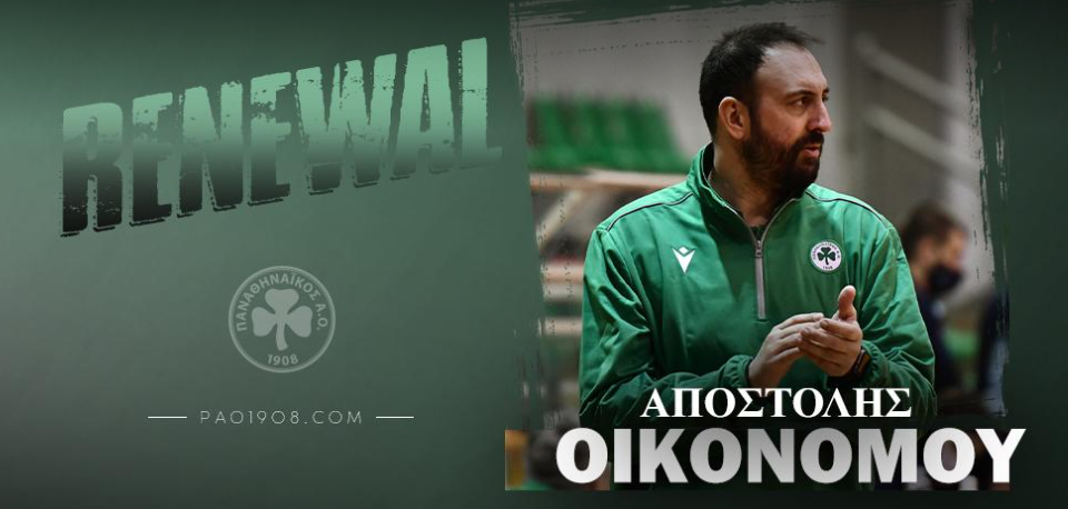«Ο Παναθηναϊκός Αθλητικός Όμιλος ανακοινώνει την ανανέωση της συνεργασίας του με τον προπονητή της γυναικείας ομάδας βόλεϊ Απόστολο Οικονόμου.