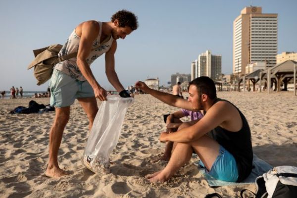 «Χτενίζοντας» την παραλία με μια μεγάλη τσάντα στο χέρι, ο 26χρονος Ισραηλινός γιορτάζει καθημερινά την Παγκόσμια Ημέρα της Γης μαζεύοντας γόπες και πουλώντας «σταχτοδοχεία τσέπης», όπως ο ίδιος τα χαρακτηρίζει, σε καπνιστές για να τους αποτρέψει από το να μολύνουν τις ακτές.