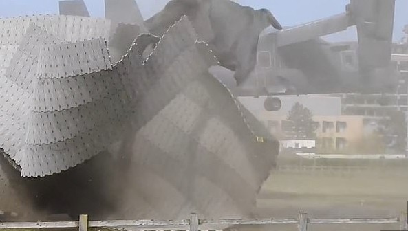 Βίντεο δείχνει τμήματα του ελικοδρομίου στο νοσοκομείο του Addenbrooke στο Cambridge να «ξηλώνονται», καθώς αεροσκάφη τύπου Tylotor CV22 Osprey της Πολεμικής Αεροπορίας των Ηνωμένων Πολιτειών (USAF) απογειώνονταν την Τετάρτη.
