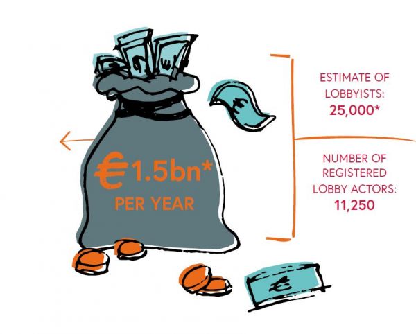 Για να καταλάβουμε πάντως τον βαθμό στον οποίο αναπτύσσονται διασυνδέσεις ανάμεσα στους ευρωπαϊκούς θεσμούς και εκπροσώπους των επιχειρήσεων, αρκεί να αναλογιστούμε ότι το 2017 υπήρχαν τουλάχιστον 25.000 λομπίστες στην Ευρωπαϊκή Ένωση και 11.250 δηλωμένοι φορείς που είχαν ως ενασχόληση το λόμπινγκ, ενώ τα χρήματα που ξόδευαν εκπρόσωποι του επιχειρηματικού κόσμου για την προώθησή των υποθέσεών τους έφταναν το 1,5 δισεκατομμύρια ευρώ ετησίως.