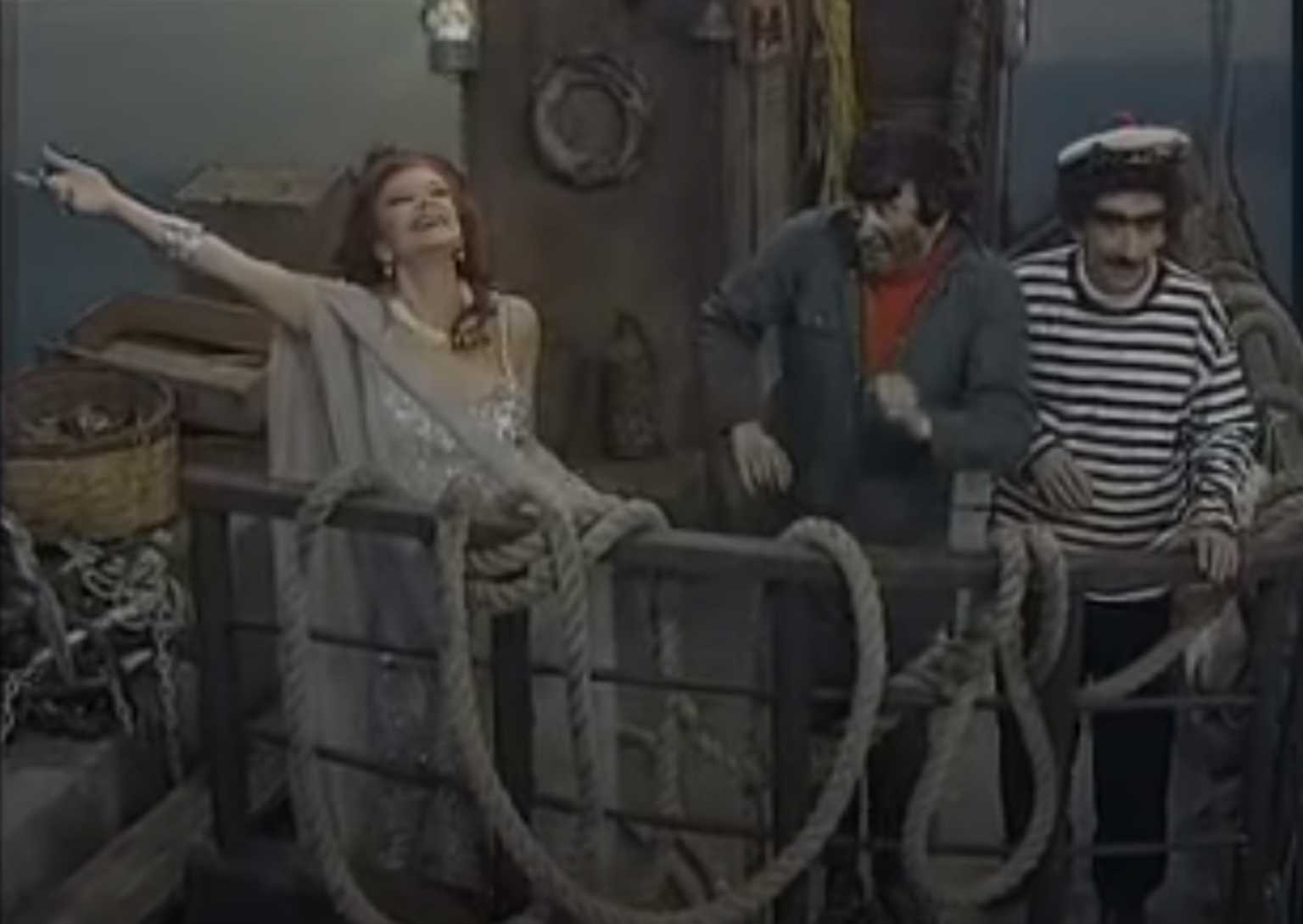Ως καραβοτσακισμένη διασημότητα, η Μίλβα σώζεται από τον μούτσο Τζίμη και τον Σκαραβαίο. Πανευτυχής χορεύει και τραγουδάει την «Θάλασσα» του Θάνου Μικρούτσικου.