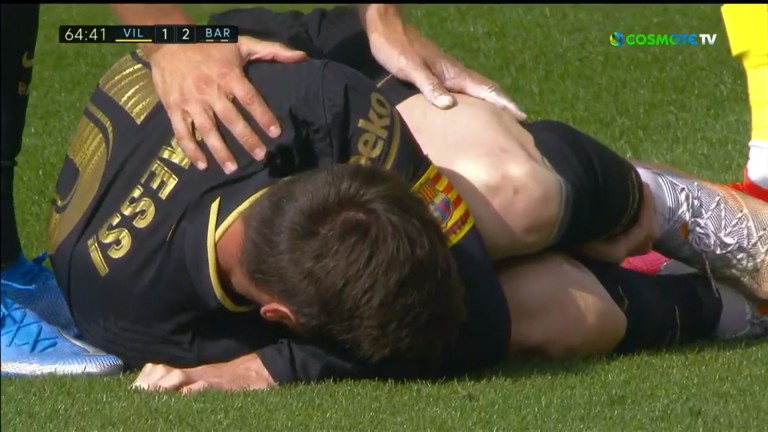 Ο Μέσι έμεινε για λίγο στο έδαφος, ωστόσο μετά από λίγο σηκώθηκε και συνέχισε κανονικά το παιχνίδι…