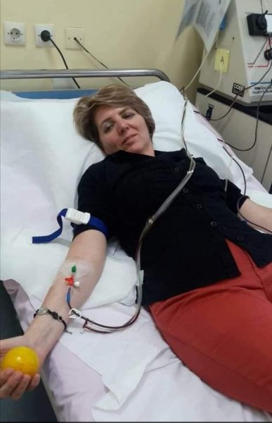 Στο Νοσοκομείο, όπου πήγε να δώσει αιμοποιητικά κύτταρα, τη συνόδευσαν τα παιδιά της για να δουν από κοντά και να σιγουρευτούν ότι δεν είναι κάτι επώδυνο, επικίνδυνο και δύσκολο. «Τα έβλεπα που κοιτούσαν με περιέργεια τα μηχανήματα που φυγοκέντριζαν το αίμα που έφευγε από το χέρι μου και αφού κρατούσαν μέσα σε σακουλάκι μόνο τα απαραίτητα για τον λήπτη κύτταρα επέστρεφαν τα υπόλοιπα στοιχεία του αίματος από το άλλο χέρι στον οργανισμό μου. Με ρωτούσαν συνέχεια πώς νιώθω, αν πονάω. Ήμουν μια χαρά. Χαρούμενη και συγκινημένη. Ούτε λόγος ότι εκείνη την μέρα θα πήγαιναν στο σχολείο τους. Ήταν πολύ ενθουσιασμένα που η μαμά τους θα έδινε μόσχευμα για να σωθεί μια ανθρώπινη ζωή. Η όλη διαδικασία κράτησε περίπου 2,5 ώρες και κατόπιν επιστρέψαμε με το αυτοκίνητο σπίτι. Αισθανόμουν υπέροχα. Καμία ζάλη, κανένας πόνος, καμία απολύτως ενόχληση. Ένιωθα ότι ήταν το καλύτερο δώρο που μου έκανε ο Θεός, να βοηθήσω ένα νέο παιδί να ξαναχαμογελάσει γεμάτο υγεία. Όλοι μού έλεγαν συγχαρητήρια για την πράξη μου. Για μένα, όμως, ο μεγάλος ήρωας είναι ο νεαρός λήπτης. Εγώ τον βάφτισα “Τζουζέπε”. Δεν γνωρίζω το όνομά του, ούτε κάτι γι αυτόν. Αυτός είναι που έδωσε τη μάχη και βγήκε νικητής. Αυτός πέρασε ώρες αγωνίας και παρακαλούσε το Θεό να δεχτεί το μόσχευμα ο οργανισμός του, ώστε να αρχίσει να δουλεύει και να τον κάνει ξανά υγιή και δυνατό. Αυτό που έκανα εγώ ήταν το εύκολο κομμάτι του θέματος και τελείωσε μέσα σε λίγες ώρες. Εκείνος έπρεπε να είναι δυνατός και να υπερβεί τα εμπόδια που θα παρουσιάζονταν σε όλη τη διάρκεια της θεραπείας που θα ακολουθούσε. Και τα κατάφερε!».
