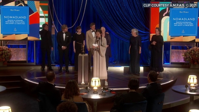 Το μεγάλο φαβορί, η ταινία «Nomadland» της Κλόι Ζάομ κέρδισε το Όσκαρ Καλύτερης Ταινίας, στην 93η τελετή η οποία πραγματοποιήθηκε στο Union Station, έναν ιστορικό σιδηροδρομικό σταθμό στην καρδιά του Λος Άντζελες, περίπου 12 χιλιόμετρα από το Dolby Theater όπου διεξάγονται παραδοσιακά οι τελετές απονομής των Όσκαρ.