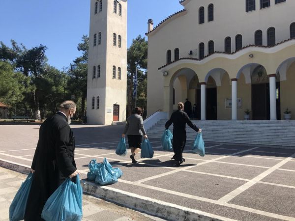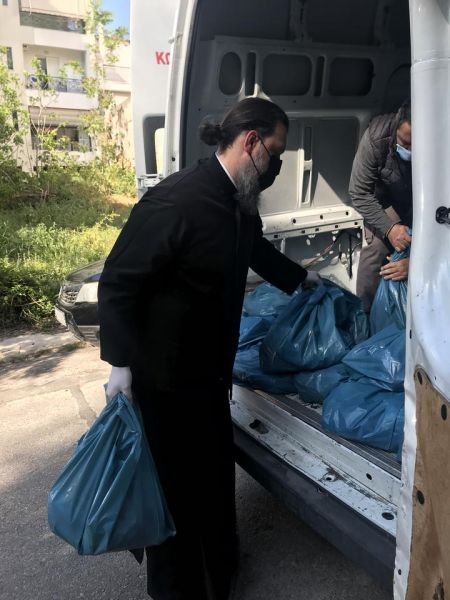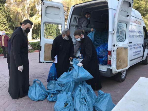 Την παράδοση των δεμάτων πραγματοποίησε ο ίδιος ο Σεβασμιώτατος, συνοδευόμενος από κληρικούς της Ιεράς Μητροπόλεως και με τη βοήθεια εθελοντών, τηρώντας όλα τα απαραίτητα μέτρα προστασίας για την αποφυγή της εξάπλωσης της νόσου.