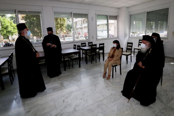 Στη συνέχεια ο π. Παντελεήμων Παπασυνεφάκης ξενάγησε στους χώρους της δομής την Πρόεδρο της Δημοκρατίας και τον Μακαριώτατο Αρχιεπίσκοπο.