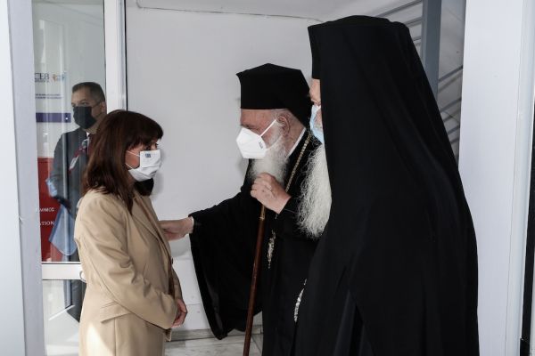 Την Πρόεδρο της Δημοκρατίας υποδέχθηκε στην είσοδο της Δομής ο Μακαριώτατος Αρχιεπίσκοπος Αθηνών και πάσης Ελλάδος κ. Ιερώνυμος, τον οποίον πλαισίωναν ο πρόεδρος της «Συνύπαρξις» Μητροπολίτης Ιλίου, Αχαρνών και Πετρουπόλεως κ. Αθηναγόρας και ο Μητροπολίτης Νικαίας κ. Αλέξιος.