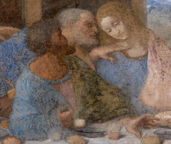 Αν παρατηρήσουμε λίγο πιο προσεκτικά, μπορούμε να διακρίνουμε έναν άντρα που ετοιμάζεται να πιάσει ένα κομμάτι ψωμί. Γνωρίζουμε πως εκείνος που άρπαξε πρώτος τον άρτο ήταν ο ίδιος που αργότερα πρόδωσε τον Χριστό.
