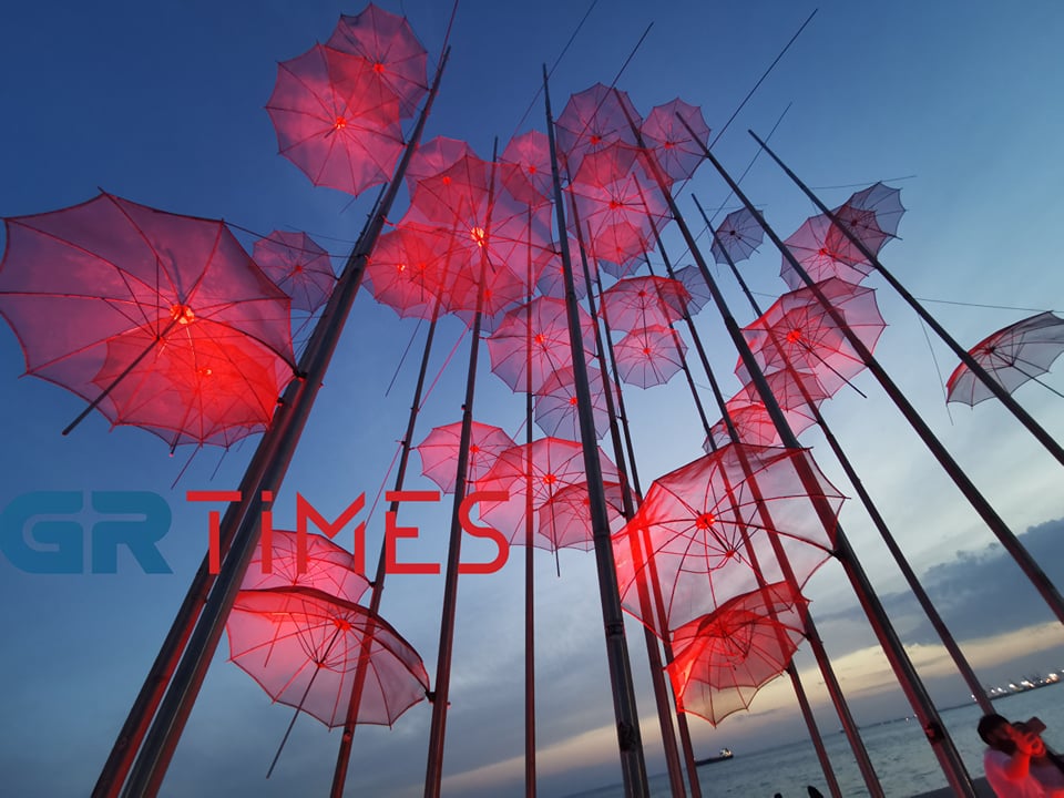 Πολλοί ήταν οι πολίτες οι οποίοι κάνοντας τη βόλτα τους στην παραλία και βλέποντας τις χρωματιστές ομπρέλες να έχουν φωτιστεί, έσπευσαν για να βγάλουν μια φωτογραφία.