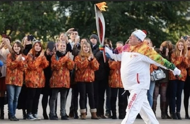 Το 2014, και έχοντας πλέον τον τίτλο του «εθνικού ήρωα» ορίστηκε λαμπαδηδρόμος στους Χειμερινούς Ολυμπιακούς Αγώνες του Σότσι. Επρόκειτο να μεταφέρει τη φλόγα από τη Μόσχα στο Κράσνογκορσκ. Ωστόσο, για κακή του τύχη, η φλόγα έσβησε όταν ήταν στη ρωσική πρωτεύουσα και, για πρώτη φορά στα χρονικά, η αρμόδια επιτροπή του επέτρεψε να μεταφέρει τη δάδα για δεύτερη φορά.