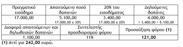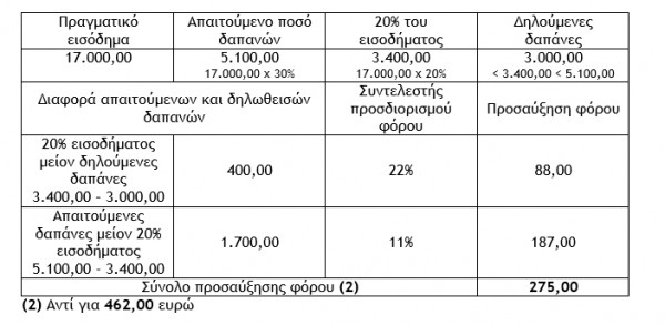 Επισήμανση : Σε κάθε περίπτωση, η προσαύξηση του φόρου δεν μπορεί να υπερβαίνει το ποσό που προκύπτει από τη θετική διαφορά μεταξύ του απαιτούμενου και του δηλωθέντος ποσού δαπανών με ηλεκτρονικά μέσα πληρωμής, πολλαπλασιαζόμενη με συντελεστή 22%.