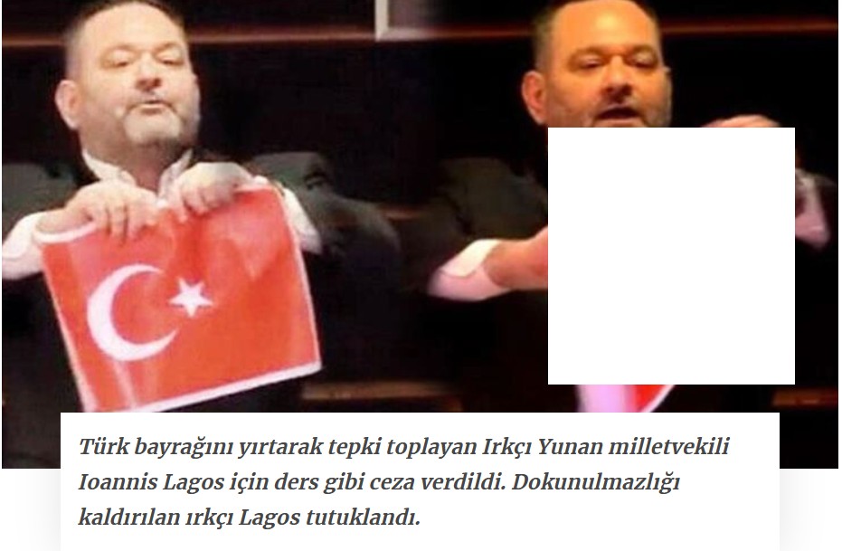 «Ποινή μάθημα δόθηκε στον ρατσιστή έλληνα βουλευτή που είχε προκαλέσει αντιδράσεις σκίζοντας την τουρκική σημαία. Ο Λαγός του οποίου η ασυλία ήρθη, προφυλακίστηκε», μεταδίδουν τα tourkikanea.gr.