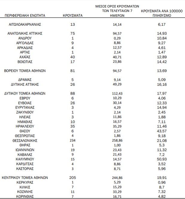 Δείτε την κατανομή των κρουσμάτων στην υπόλοιπη Ελλάδα