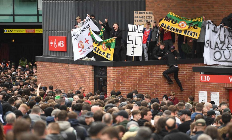 Οι οπαδοί της Γιουνάιτεντ ήταν έξαλλοι με την οικογένεια Γκλέιζερ απαιτώντας να φύγουν άμεσα από την ομάδα με τα συνθήματα μάλιστα να περιέχουν ακόμη και απειλές για τους ιδιοκτήτες του συλλόγου. Παρά το γεγονός ότι αρχικά τα αγγλικά ΜΜΕ τόνιζαν ότι το ματς πηγαίνει προς καθυστερημένη έναρξη αλλά όχι αναβολή, τελικά δεν θα πραγματοποιηθεί σήμερα και πλέον αναζητείται νέα ημερομηνία για τη διεξαγωγή του.