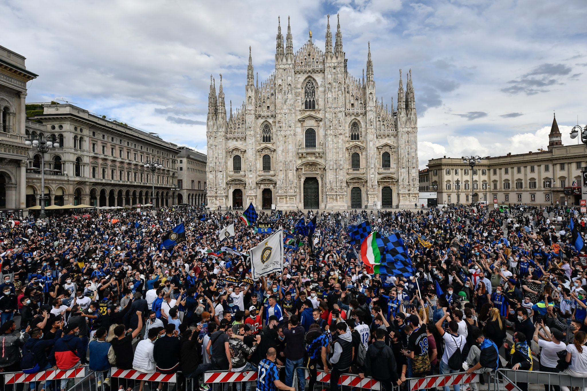 Χιλιάδες οπαδοί της Ιντερ κατέκλυσαν την κεντρική πλατεία του Μιλάνο, Ντουόμο και γιόρτασαν την κατάκτηση του πρωταθλήματος, φωνάζοντας συνθήματα για την αγαπημένη τους ομάδα και αποθεώνοντας τον Αντόνιο Κόντε και τους ποδοσφαιριστές της ιταλικής ομάδας.