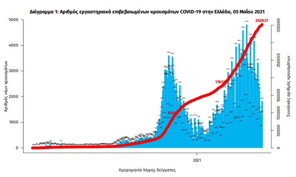 Τα νέα εργαστηριακά επιβεβαιωμένα κρούσματα της νόσου που καταγράφηκαν τις τελευταίες 24 ώρες είναι 2.093, εκ των οποίων 6 εντοπίστηκαν κατόπιν ελέγχων στις πύλες εισόδου της χώρας. Ο συνολικός αριθμός των κρουσμάτων ανέρχεται σε 352.027 (ημερήσια μεταβολή +0.6%), εκ των οποίων 51.3% άνδρες.