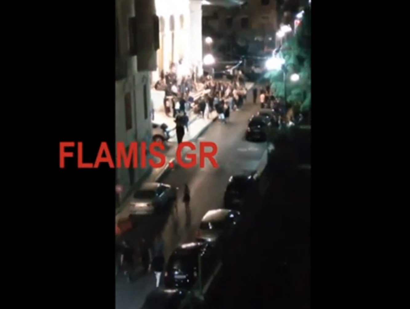 Αρκετός κόσμος μαζεύτηκε στην πλατεία, ενώ κάποιοι είχαν φροντίσει και για τη μουσική που σύμφωνα με το flamis.gr έπαιζε από μεγάφωνα αυτοκινήτου.