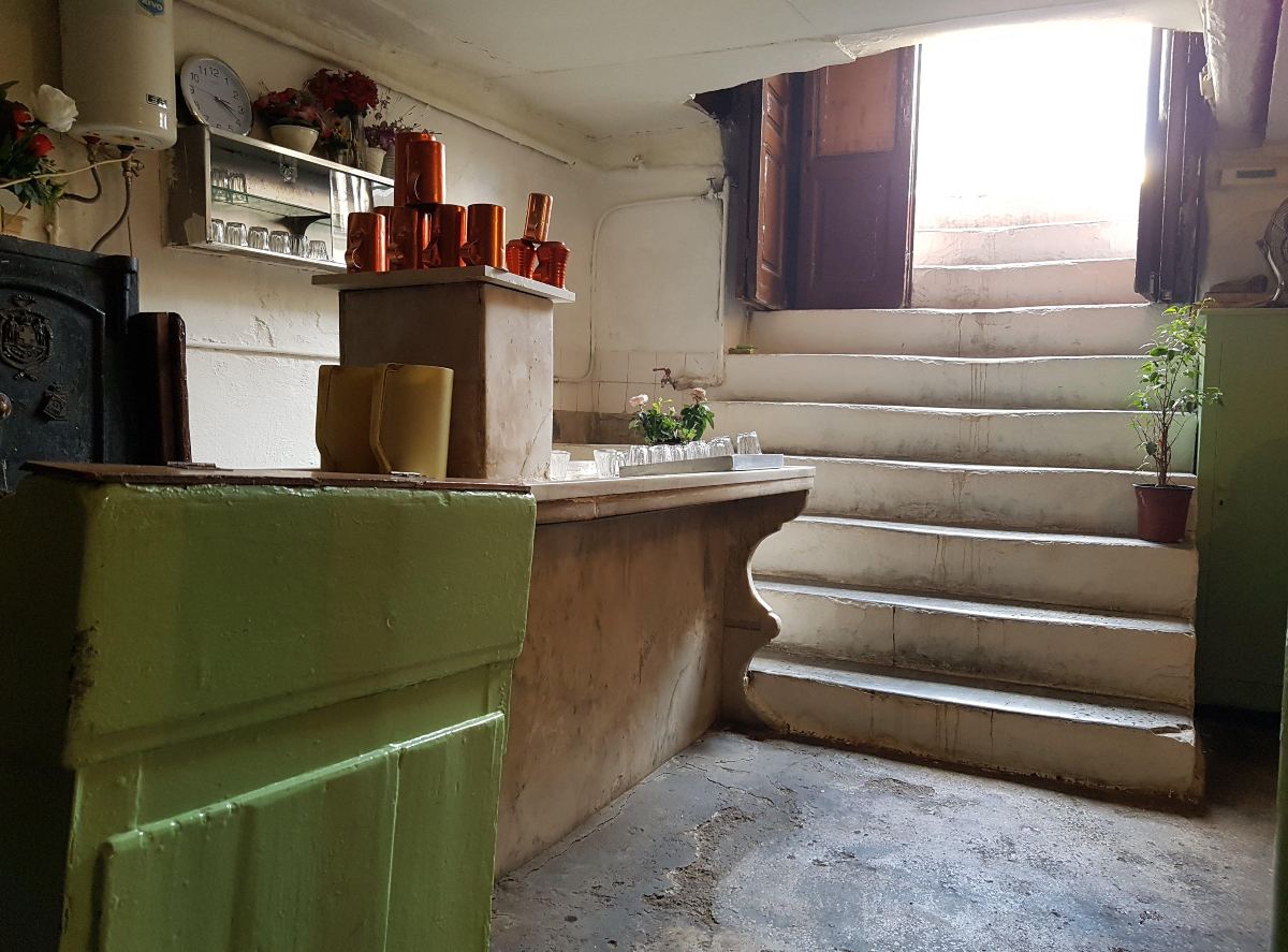 Το Δίπορτο άδειο από κόσμο (κι αυτό πρώτη φορά!) είναι πιο όμορφο από ποτέ. Ο κυρ Μήτσος μας οδηγεί στον μαρμάρινο πάγκο στο βάθος. «Να, τραβήξτε καμιά φωτογραφία από εδώ» και μας προσφέρει ρετσίνα. Πίνουμε «κούπα». Μπαμ και κάτω. Κι έπειτα άλλο ένα.
