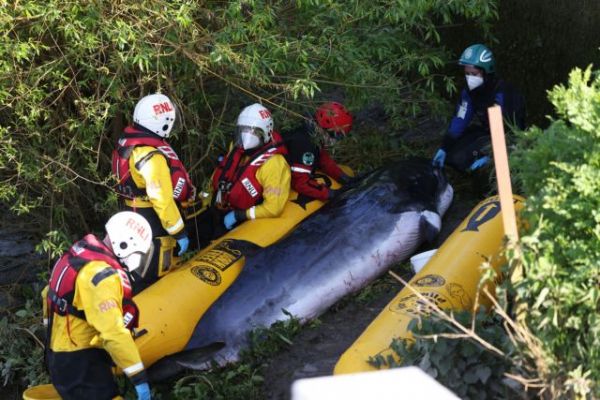 Η ρυγχοφάλαινα, με μήκος 3-4 μέτρα, εντοπίστηκε χθες στο νοτιοδυτικό Λονδίνο. Ανήσυχος για πιθανό τραυματισμό της, ένας κτηνίατρος εξέτασε και φρόντισε το κητοειδές, πριν από την επέμβαση του Royal National Lifeboat Institute (RNLI), μια επιχείρηση που χαιρέτισαν ζητωκραυγάζοντας εκατοντάδες θεατές.