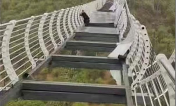 Φωτογραφίες που αναρτήθηκαν στα κοινωνικά δίκτυα απεικονίζουν τον άνδρα να κρέμεται στο πλάι της γέφυρας, ενώ γύρω του, στη θέση των γυάλινων πάνελ, υπήρχε μόνο κενό. Δημοσιεύματα των κρατικών ΜΜΕ έγιναν viral στο Weibo, το κινεζικό «Twitter».