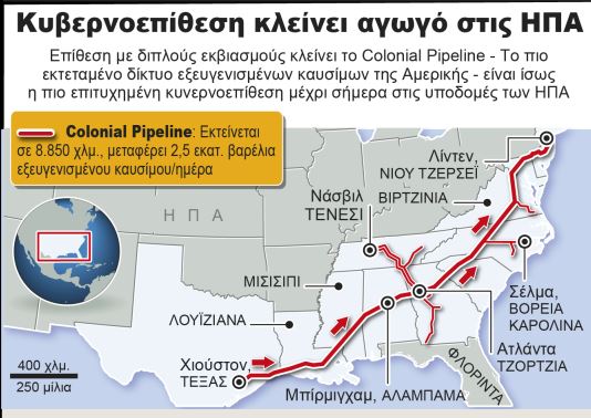 Προσωρινές διακοπές στη λειτουργία νοσοκομειακών μονάδων εν μέσω πανδημίας, θεραπειών καρκινοπαθών και σχολικών προγραμμάτων. Παρακώλυση του έργου κρατικών υπηρεσιών, ακόμη και αστυνομικών τμημάτων. Τώρα «έμφραγμα» και στην κύρια γραμμή τροφοδοσίας με καύσιμα των ανατολικών ακτών των ΗΠΑ, μετά την κυβερνοεπίθεση κατά της κορυφαίας αμερικανικής εταιρείας διαχείρισης αγωγών Colonial Pipeline…