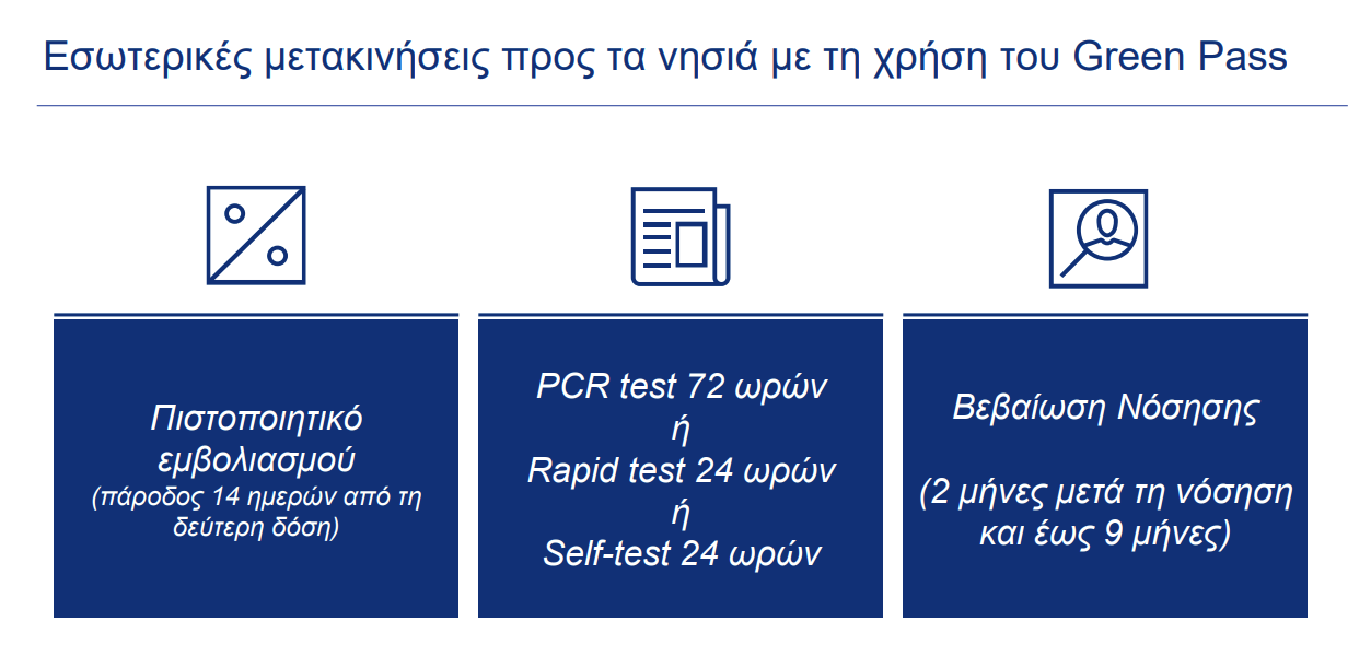 Παράλληλα ανακοίνωσε πως οι μετακινήσεις προς τα νησιά της χώρας μας θα γίνεται αποκλειστικά με τη χρήση του Green Pass.