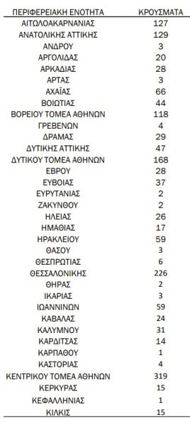 Αναλυτικότερα τα κρούσματα στις περιφερειακές ενότητες που ανήκουν στην Αττική: