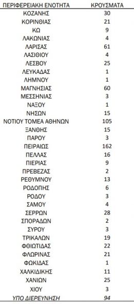Αναλυτικά η κατανομή των νέων κρουσμάτων κοροναϊού.