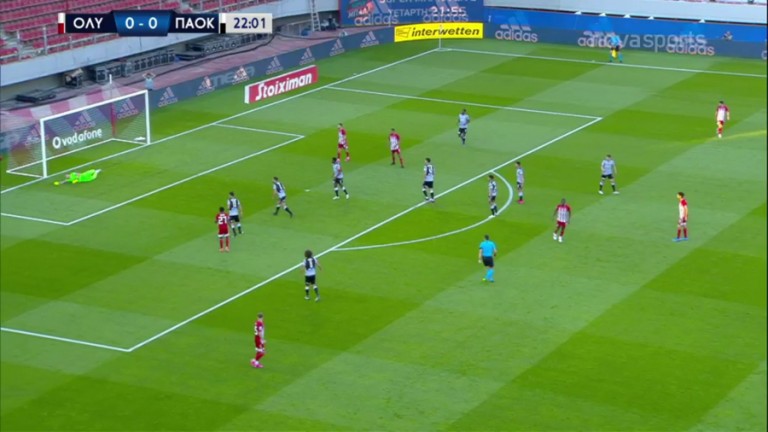 Κοντά στο γκολ έφτασε ο Ολυμπιακός στο 22ο λεπτό της αναμέτρησης με τον ΠΑΟΚ.