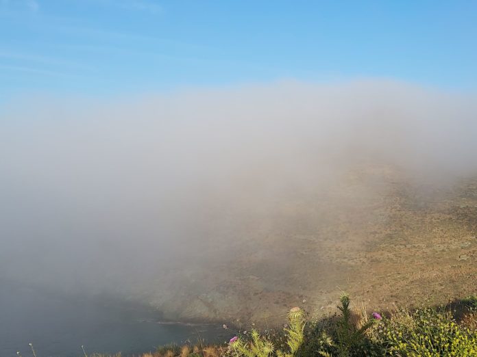 Περιορισμένη ήταν και η ορατότητα προς τη Μύκονο καθώς το εντυπωσιακό φαινόμενο κυριολεκτικά εξαφάνισε το γειτονικό νησί.