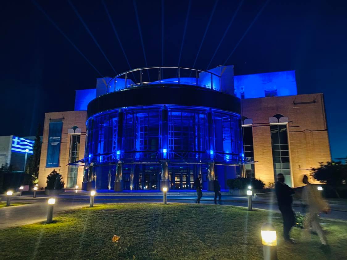 Μέγαρο Μουσικής Θεσσαλονίκης: Γιατί φωταγωγήθηκε στα γαλανόλευκα – Εντυπωσιακό το αποτέλεσμα